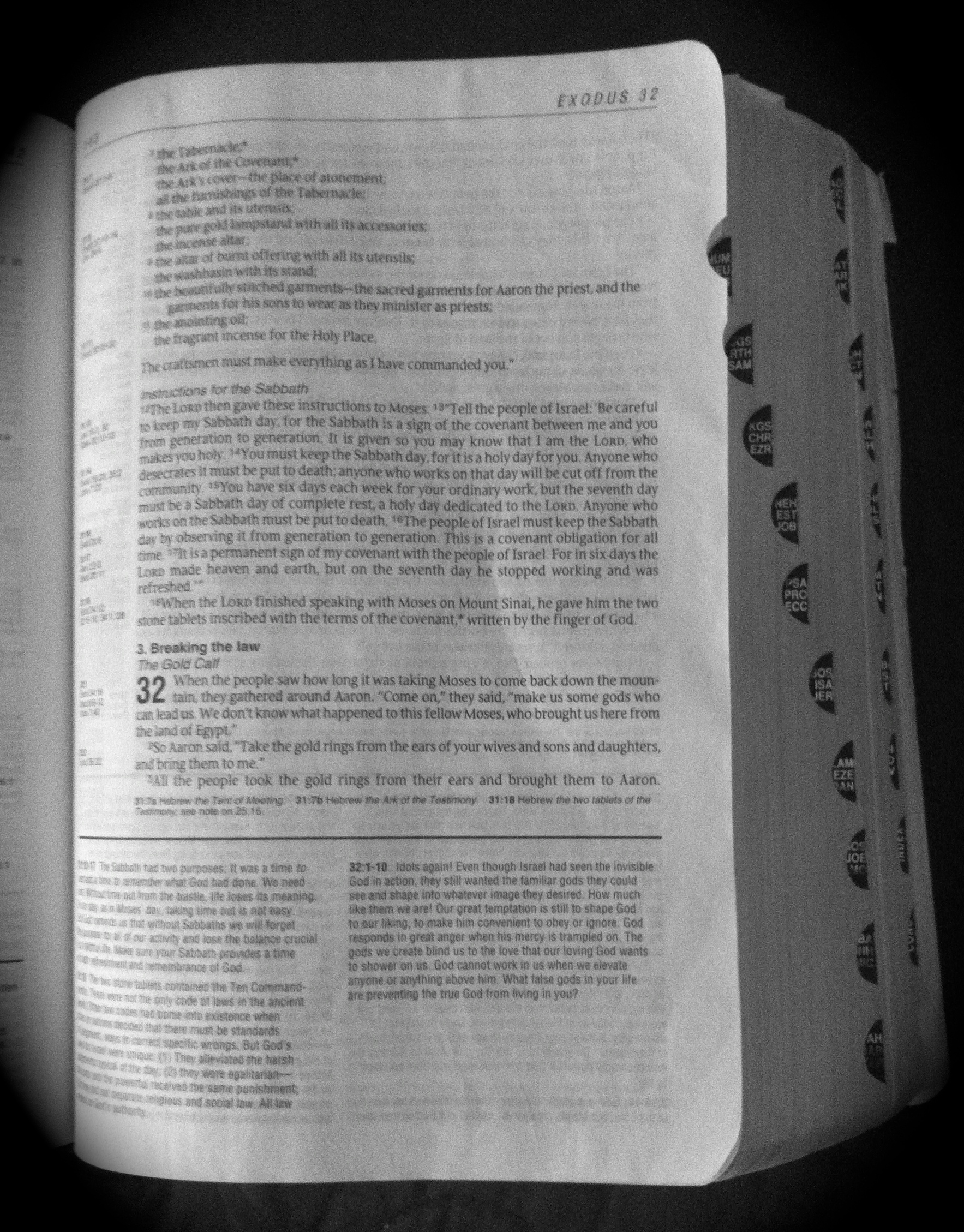 3 All the people took the gold rings from their ears and brought them to Aaron. 4 Then Aaron took the gold, melted it down, and molded it into the shape of a calf. When the people saw it, they exclaimed, “O Israel, these are the gods who brought you out of the land of Egypt!”